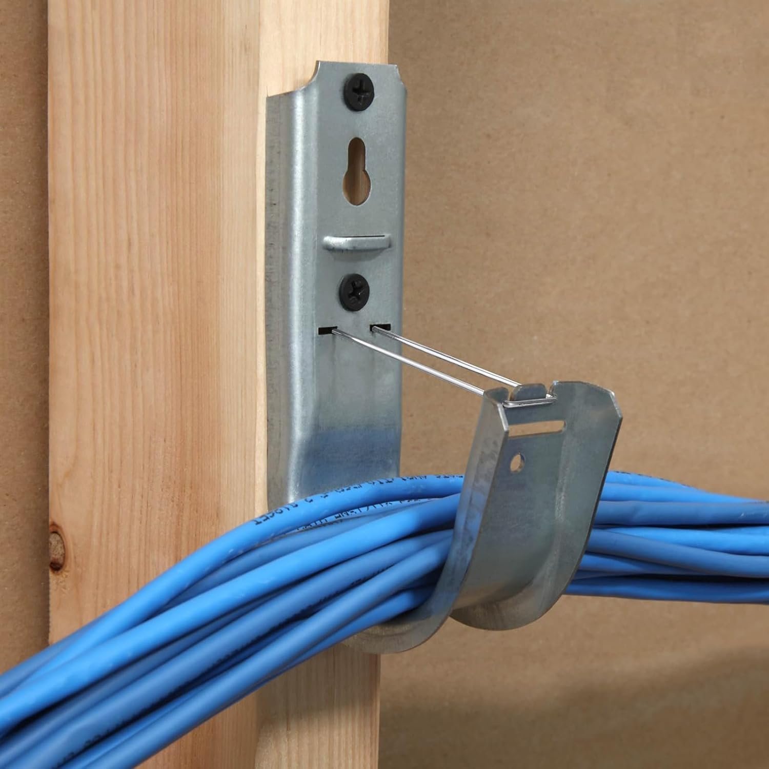 Secure Cable Retention – Built-in retainer clips hold CAT5e, CAT6, coaxial, fiber, and conduit cables in place.